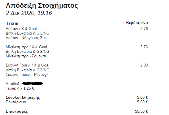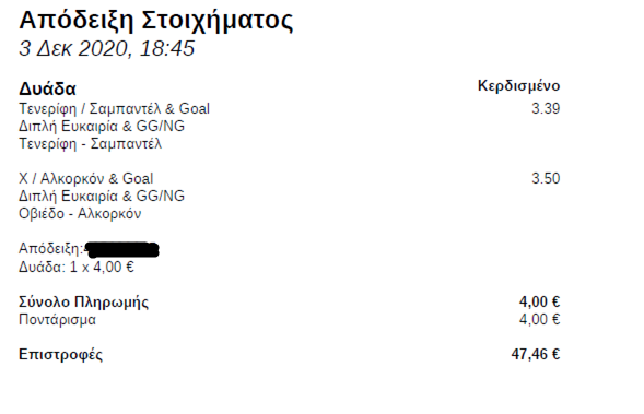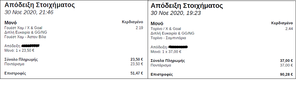Στα δύο δελτία που παραθέτω η πρόγνωσή μου είναι η ΔΕ και ο όρος-τύχη είναι το GG.